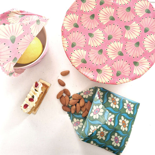 Fun and colourful patterns to perk up your leftovers. Our beeswax wraps...